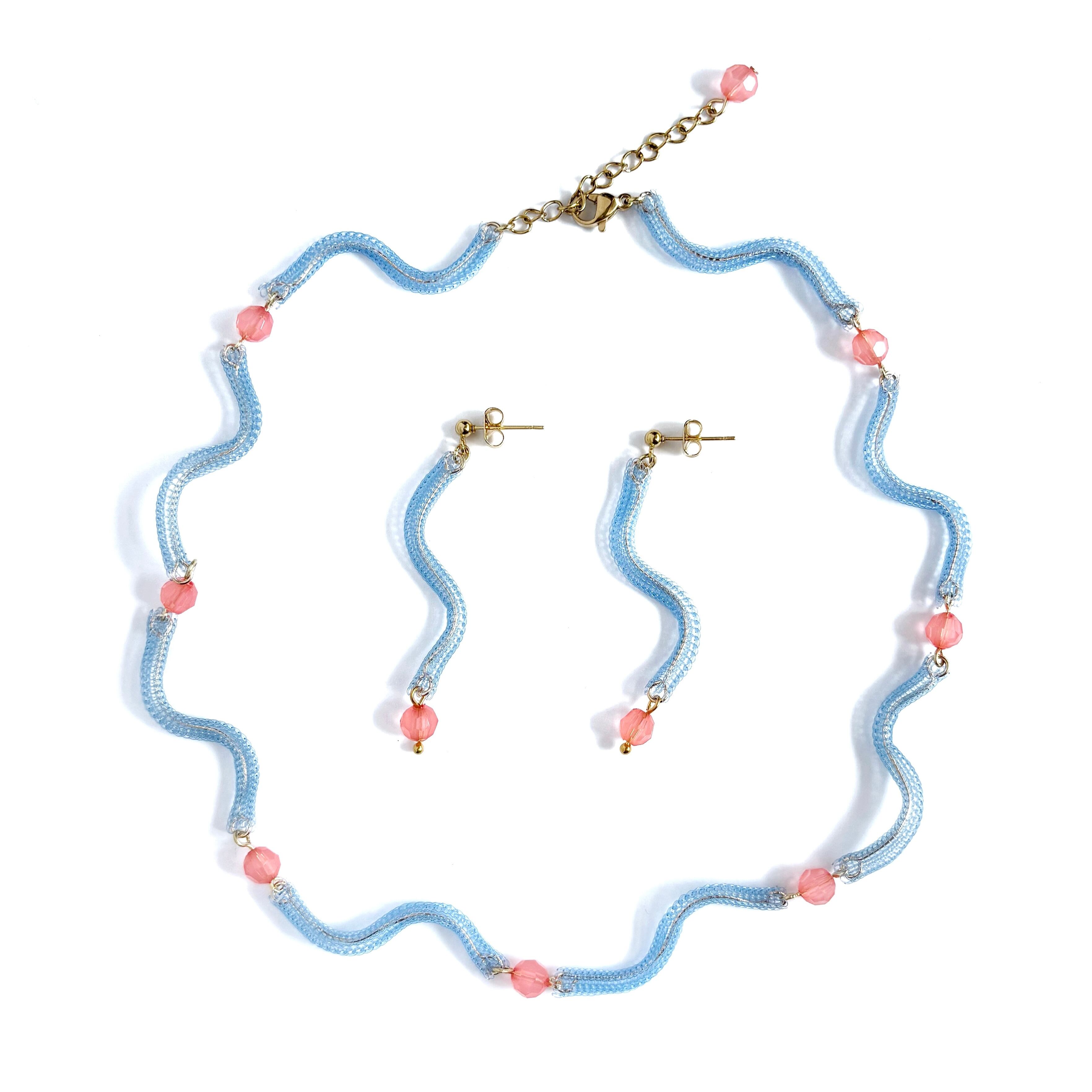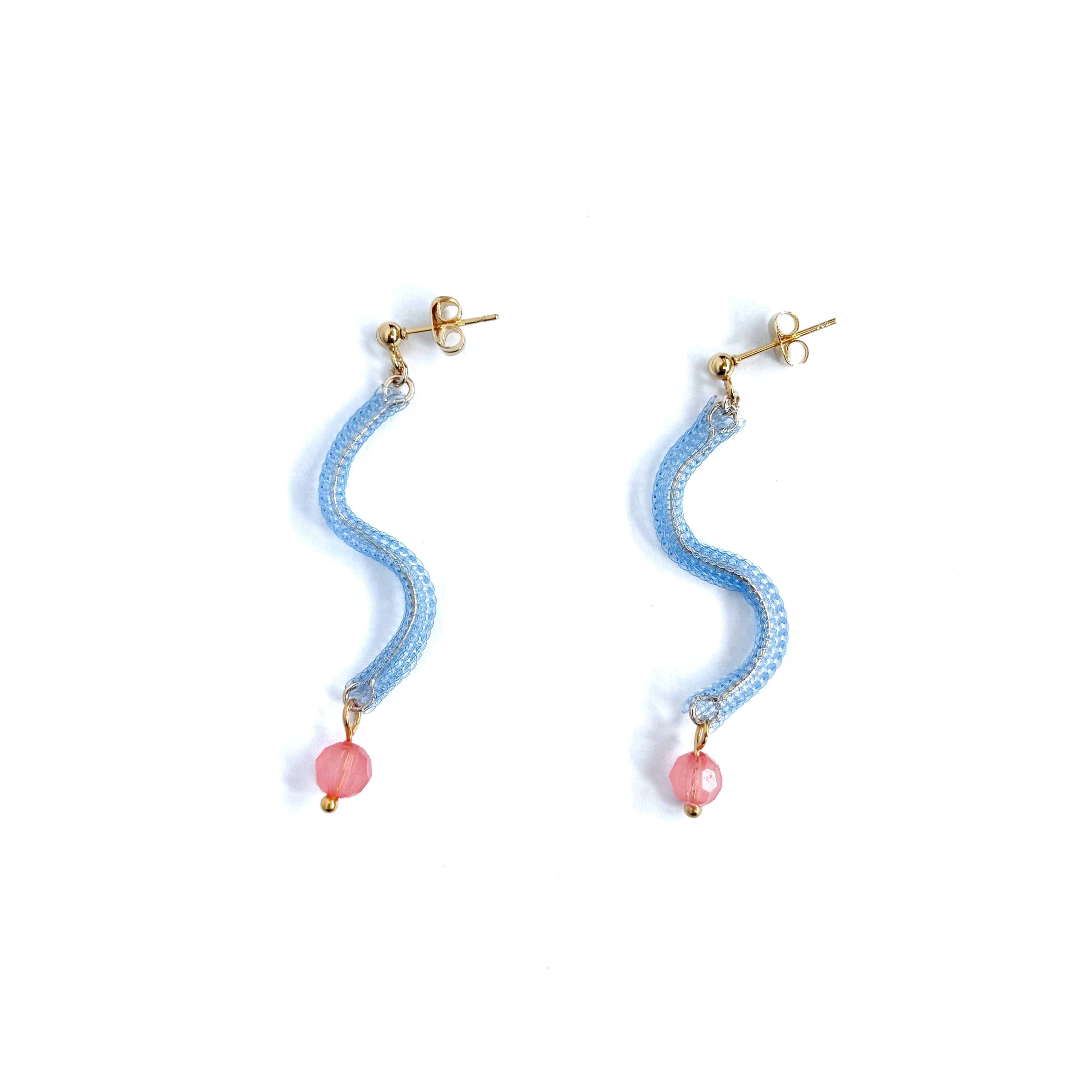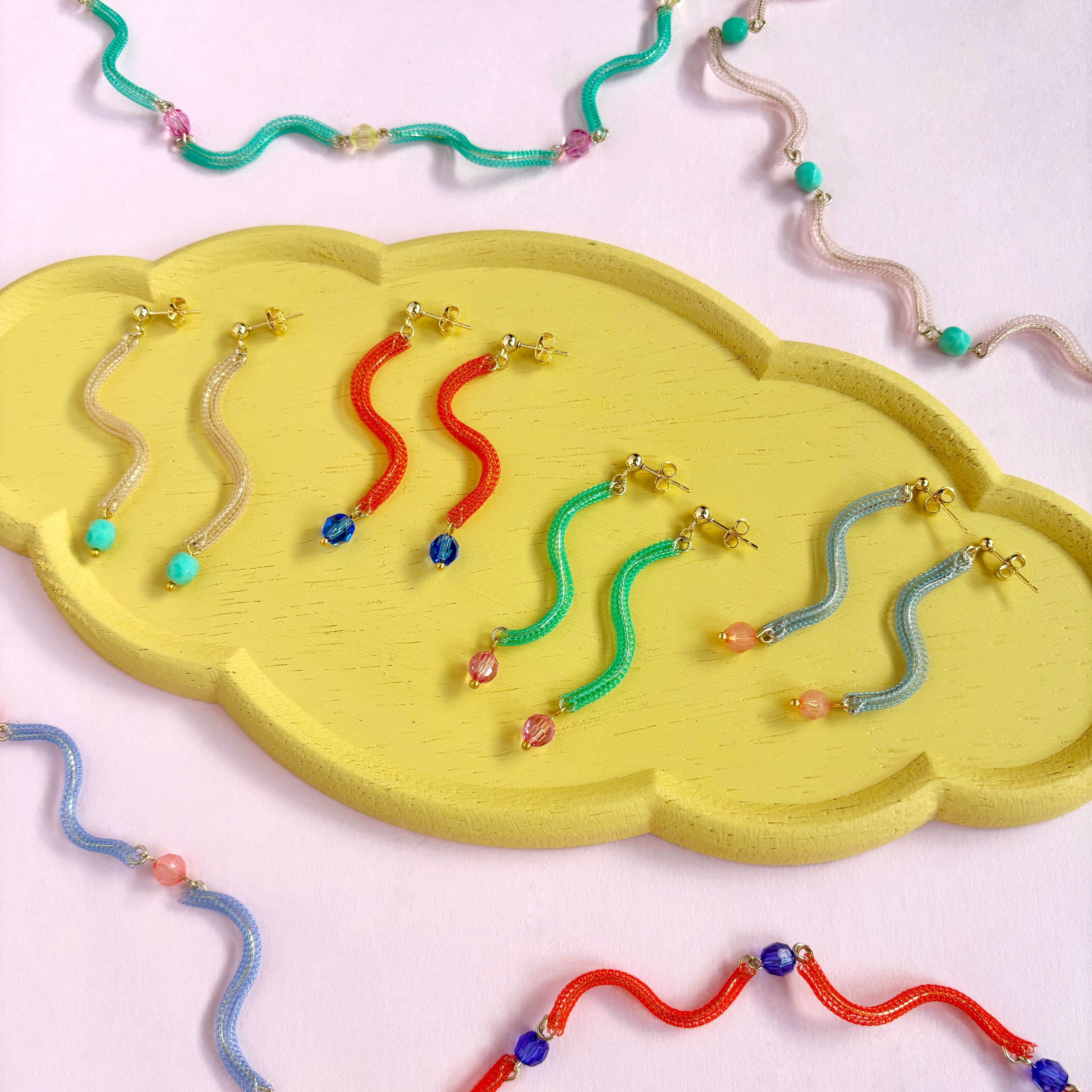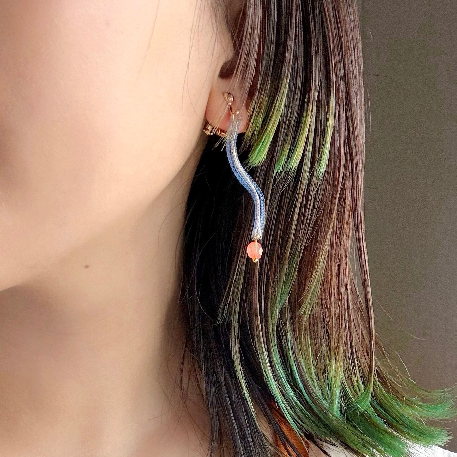 ナイロンの糸がチューブ状に編まれた特殊な素材を使用した耳飾り。