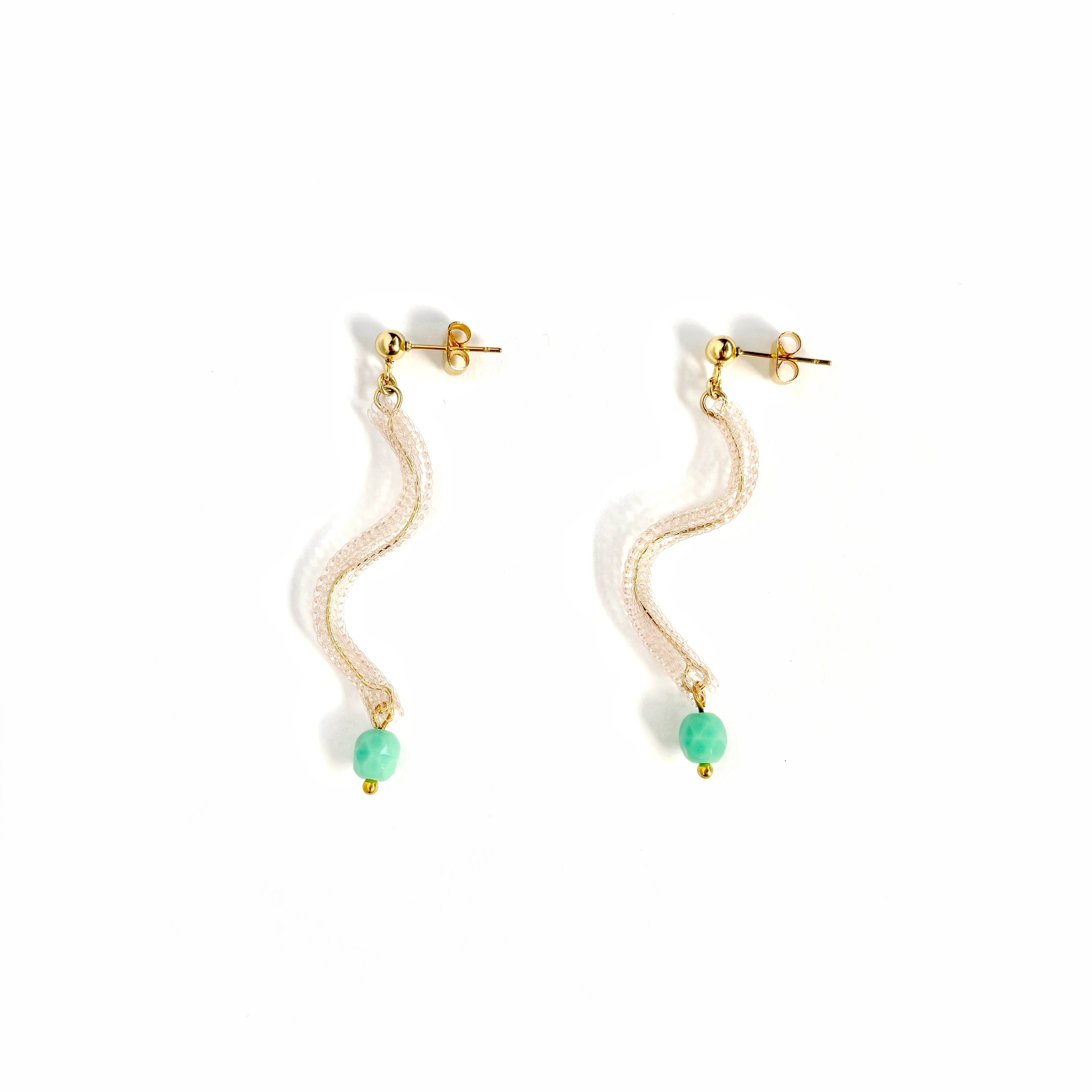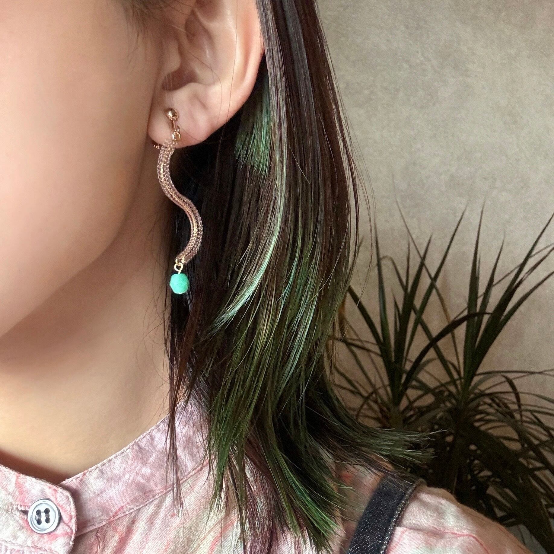ナイロンの糸がチューブ状に編まれた特殊な素材を使用した耳飾り。