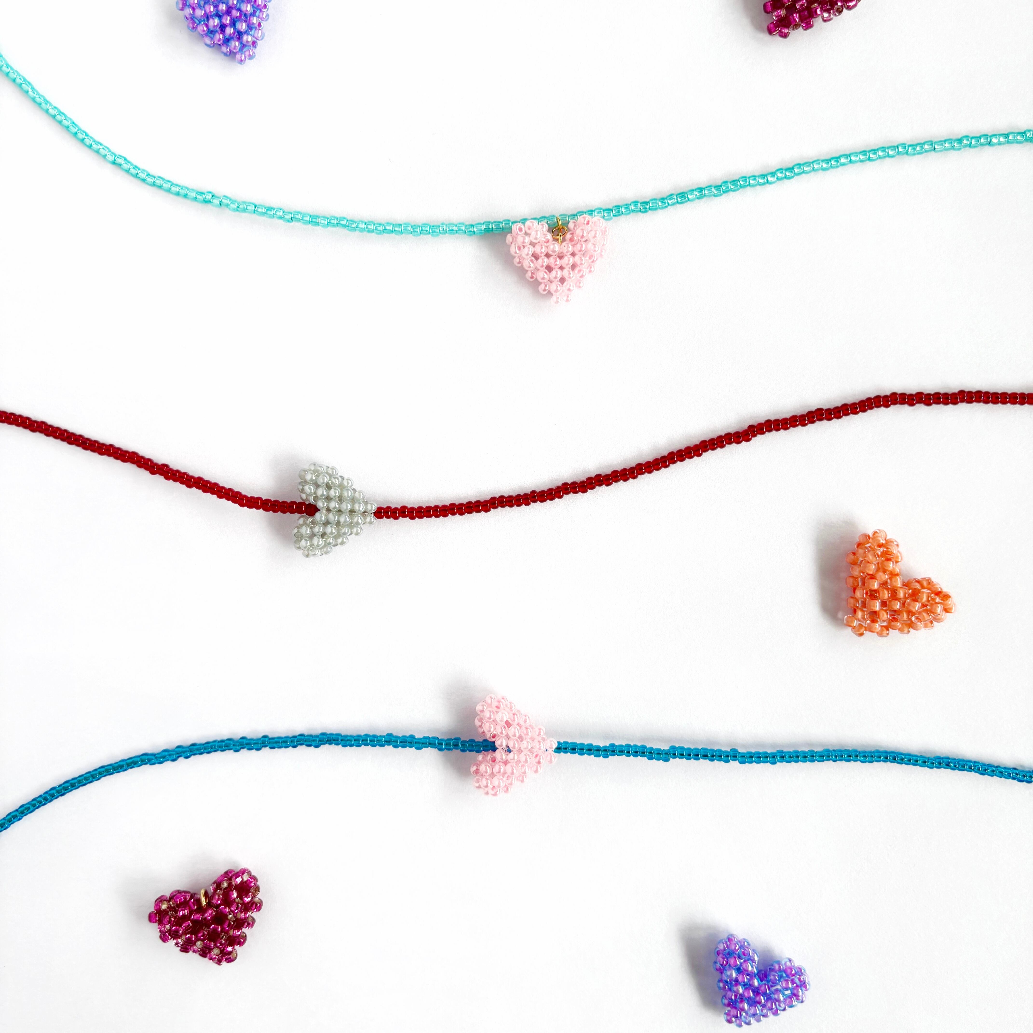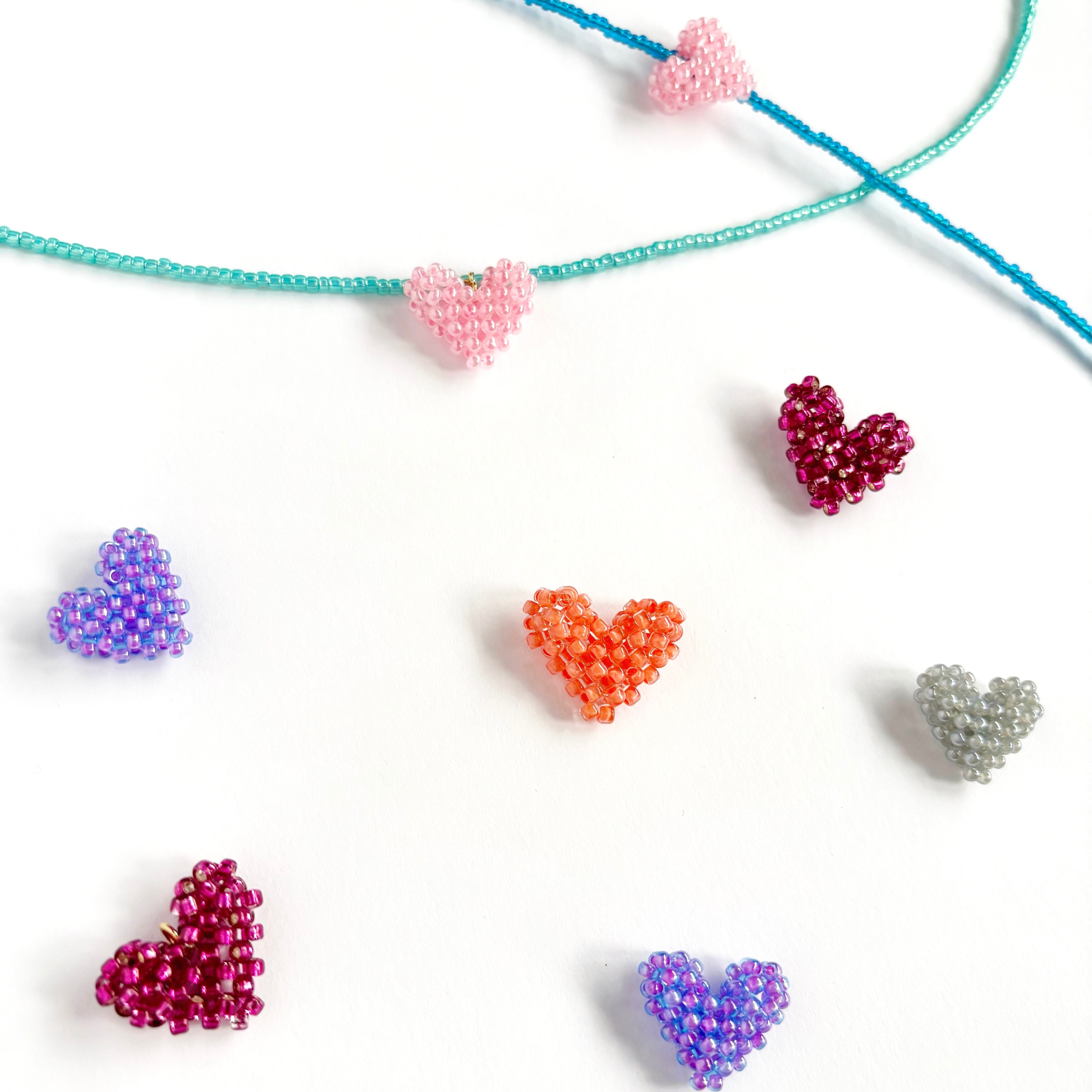 いろとりどりのビーズでできたハートを