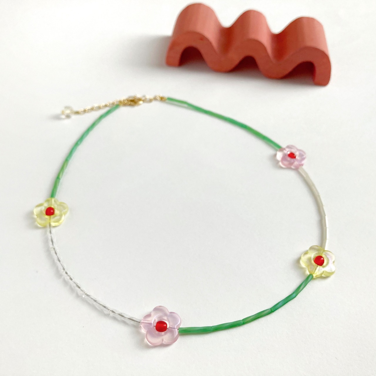 鮮やかなグリーンを表現した竹ビーズはマット素材で