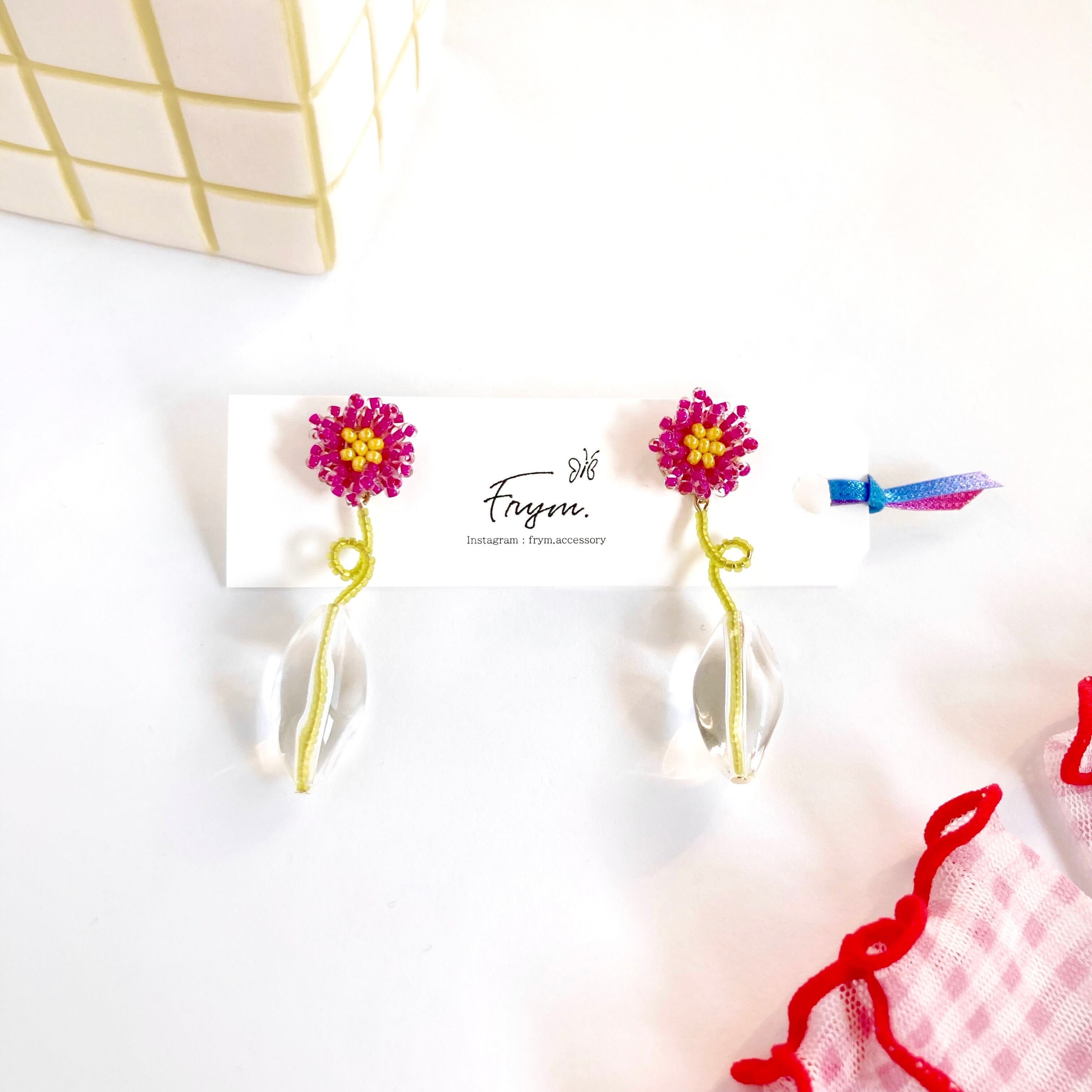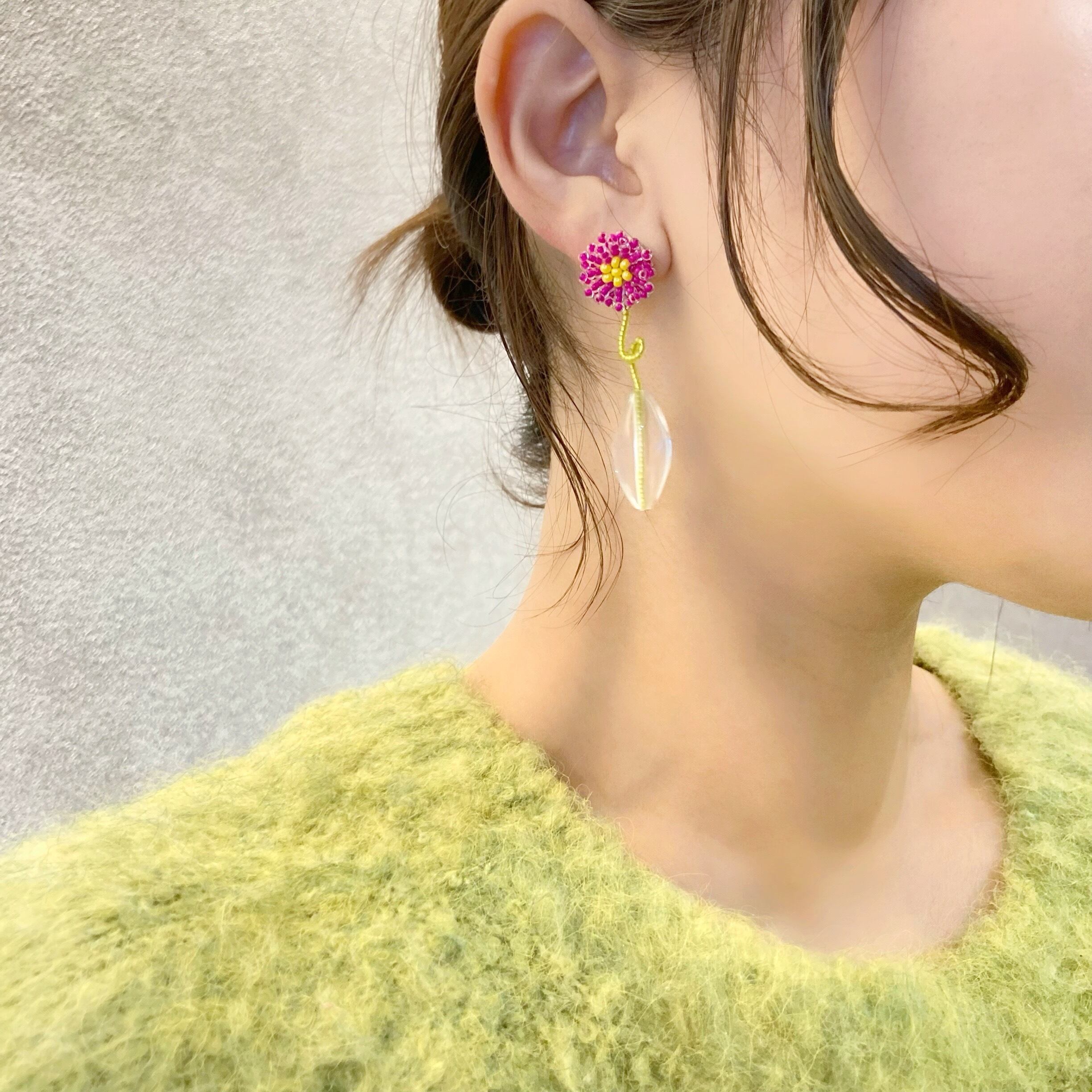一輪挿しの耳飾り Pink Purple