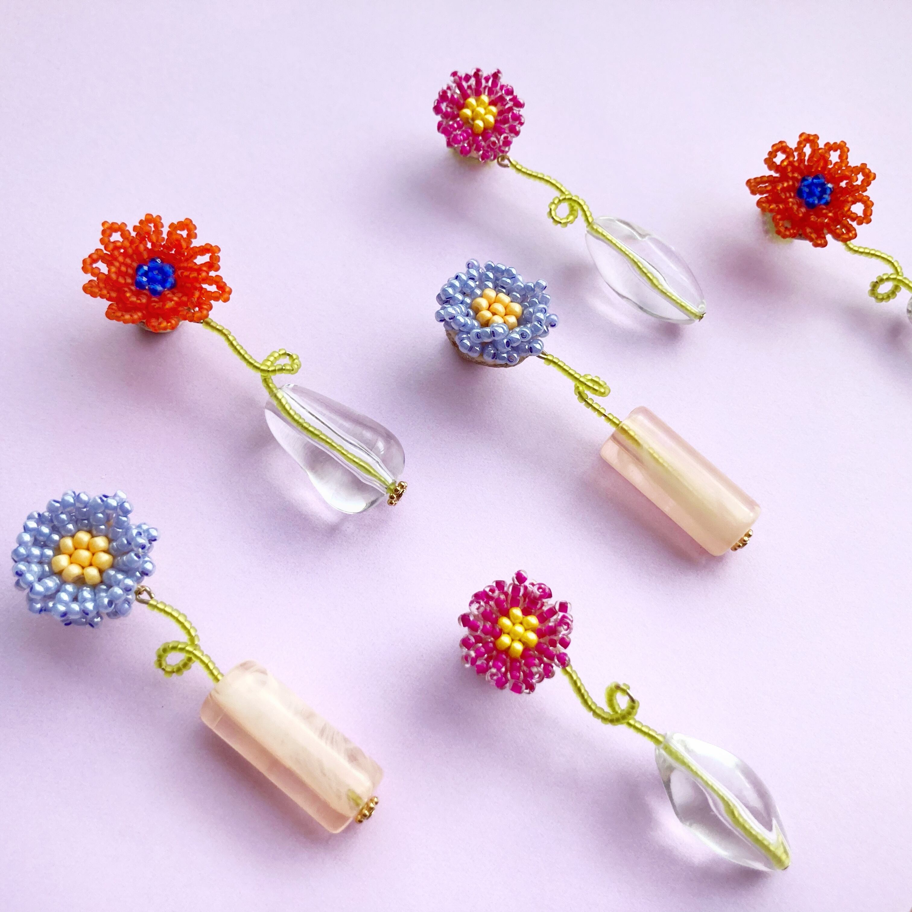 ビーズでできたお花の茎が透けて可愛いです。