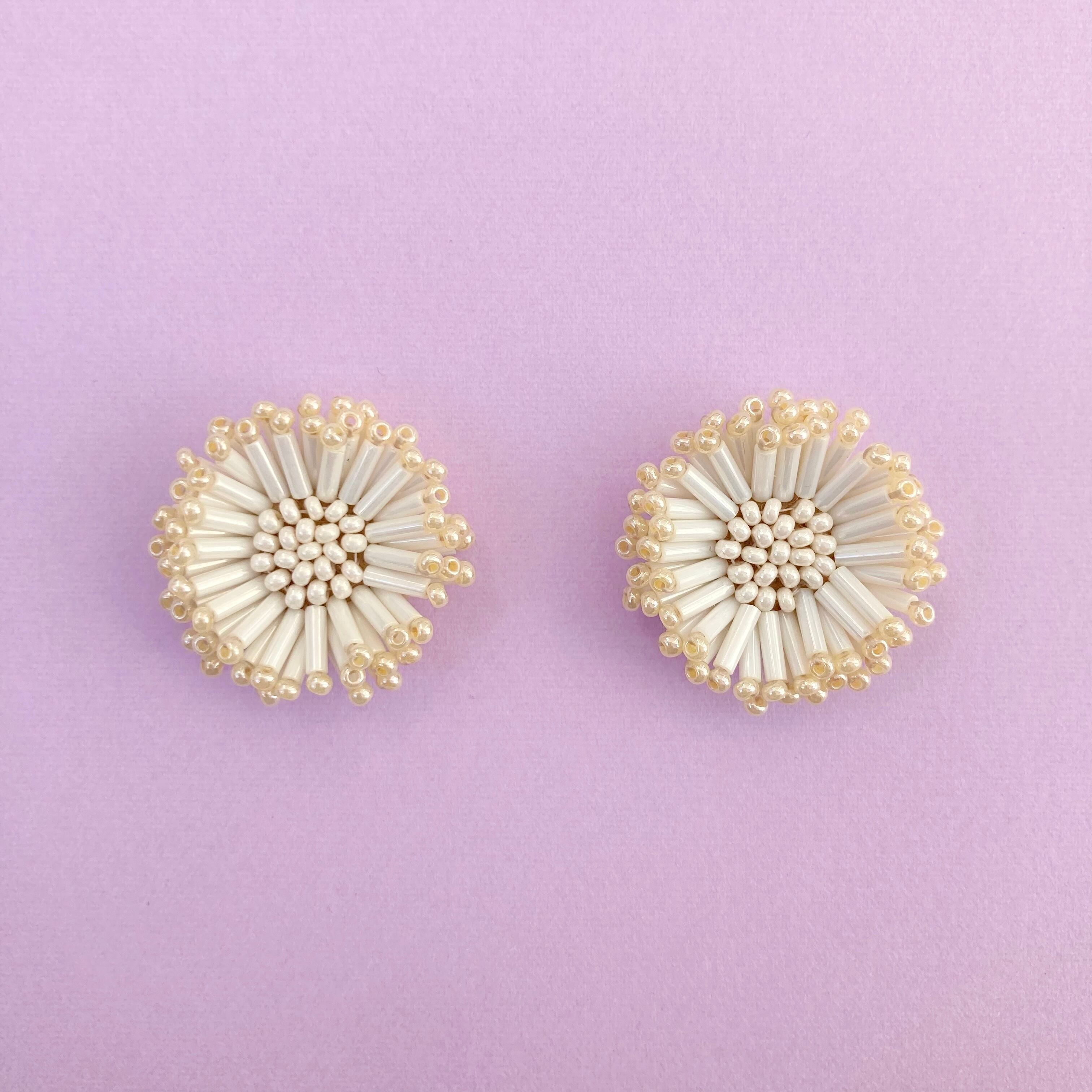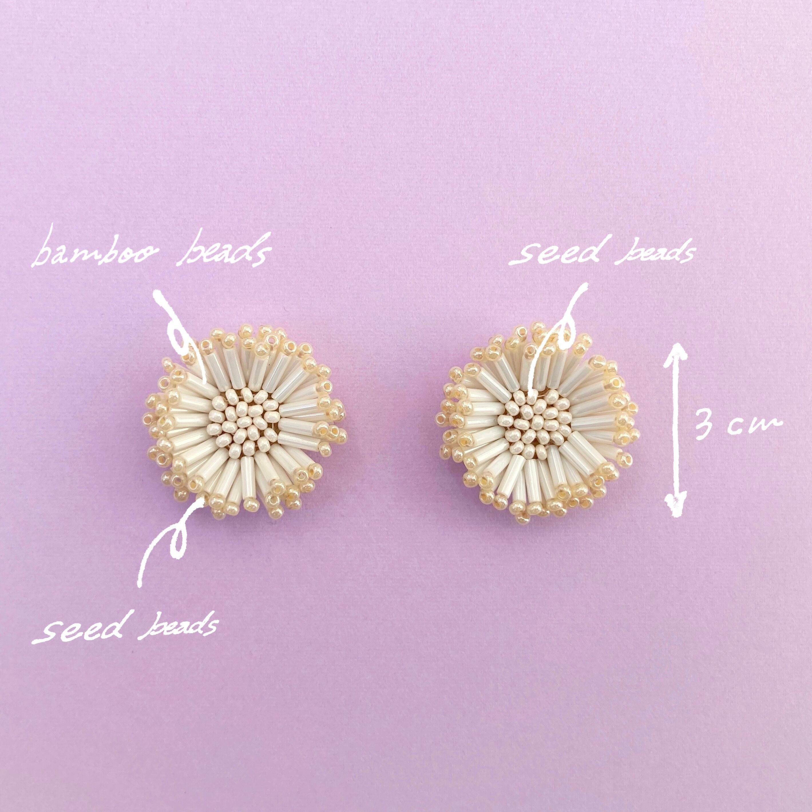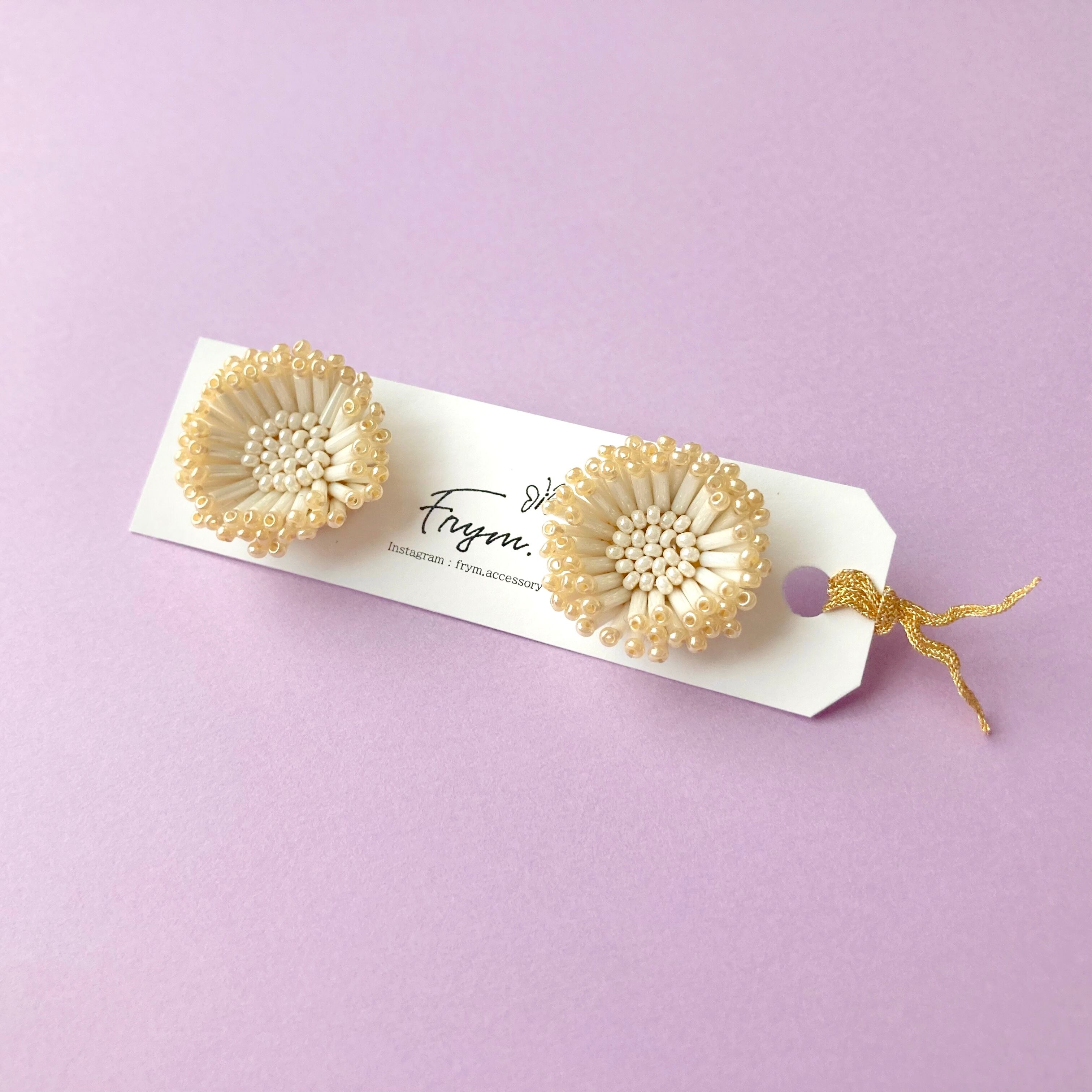 また、真っ白ではなくオフホワイトなので、上品で肌馴染みの良い耳飾りです。