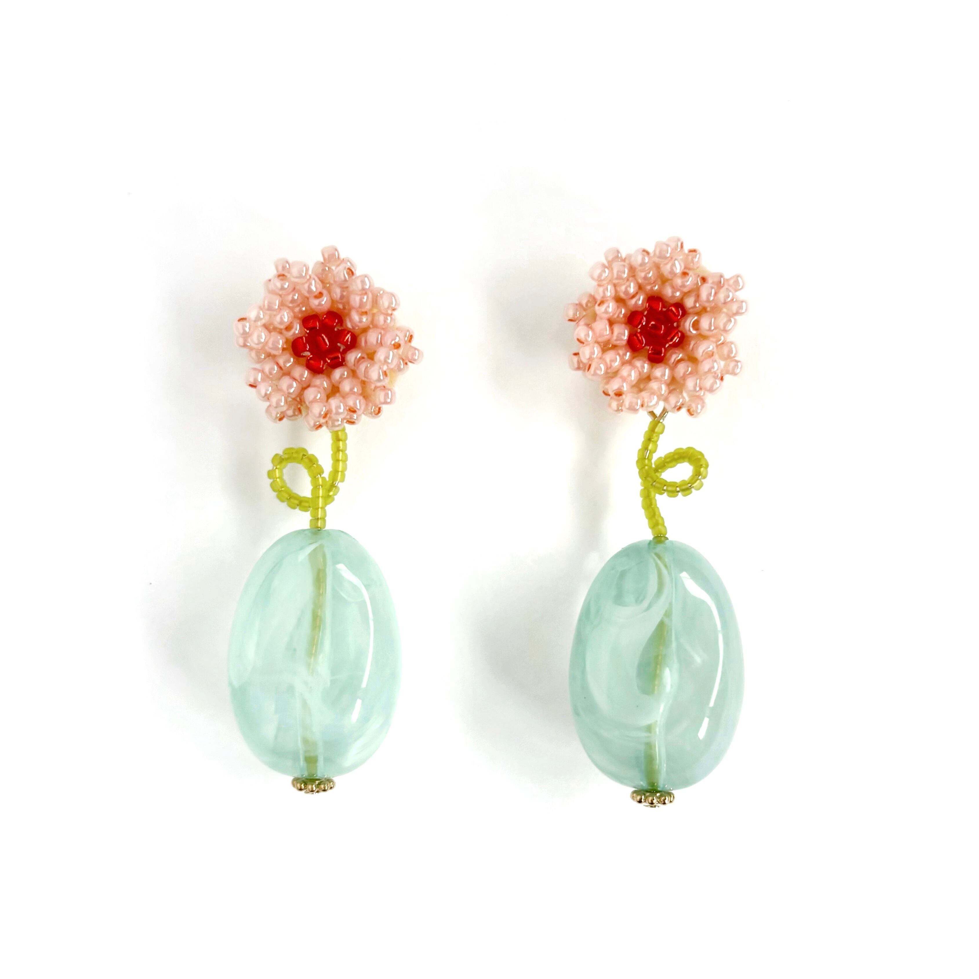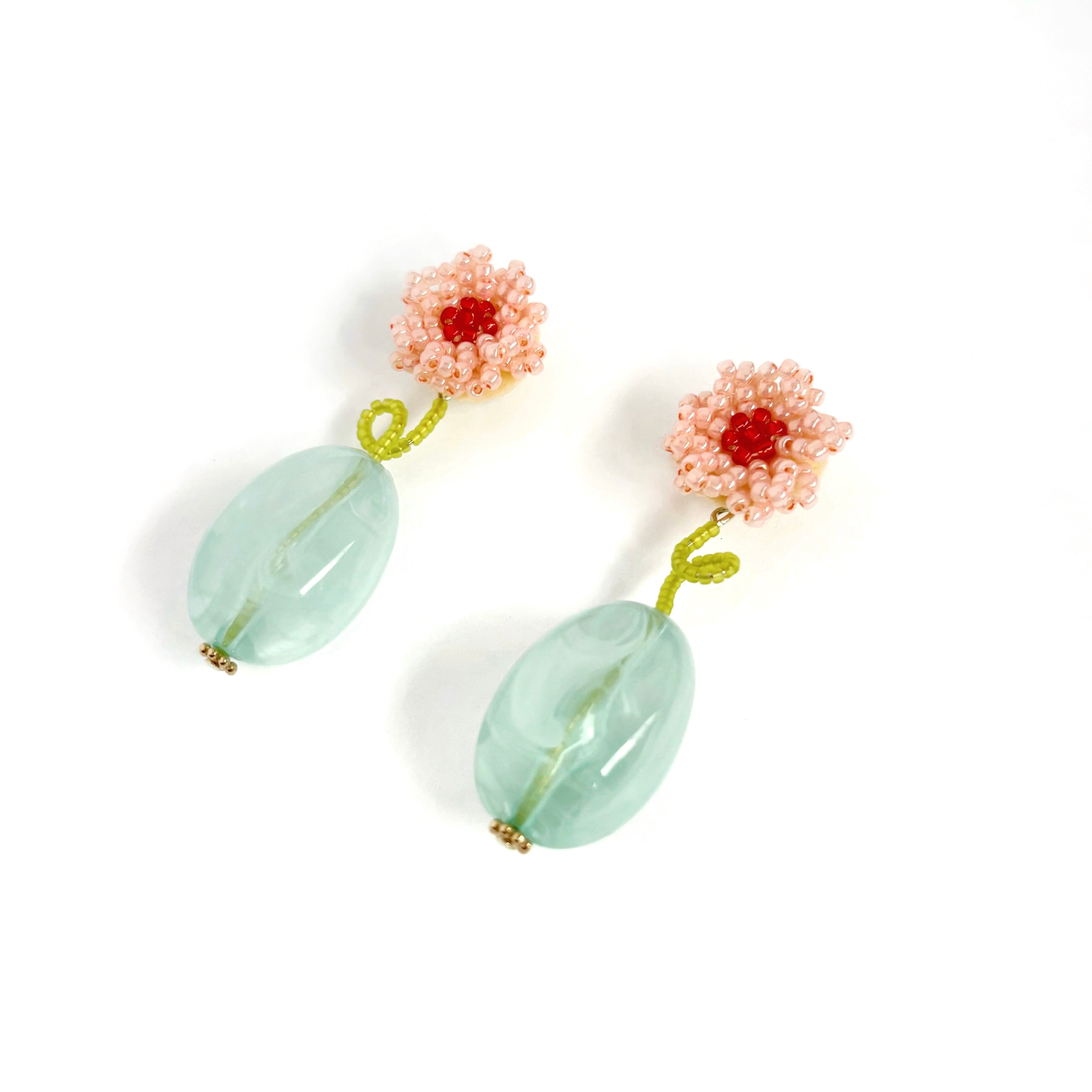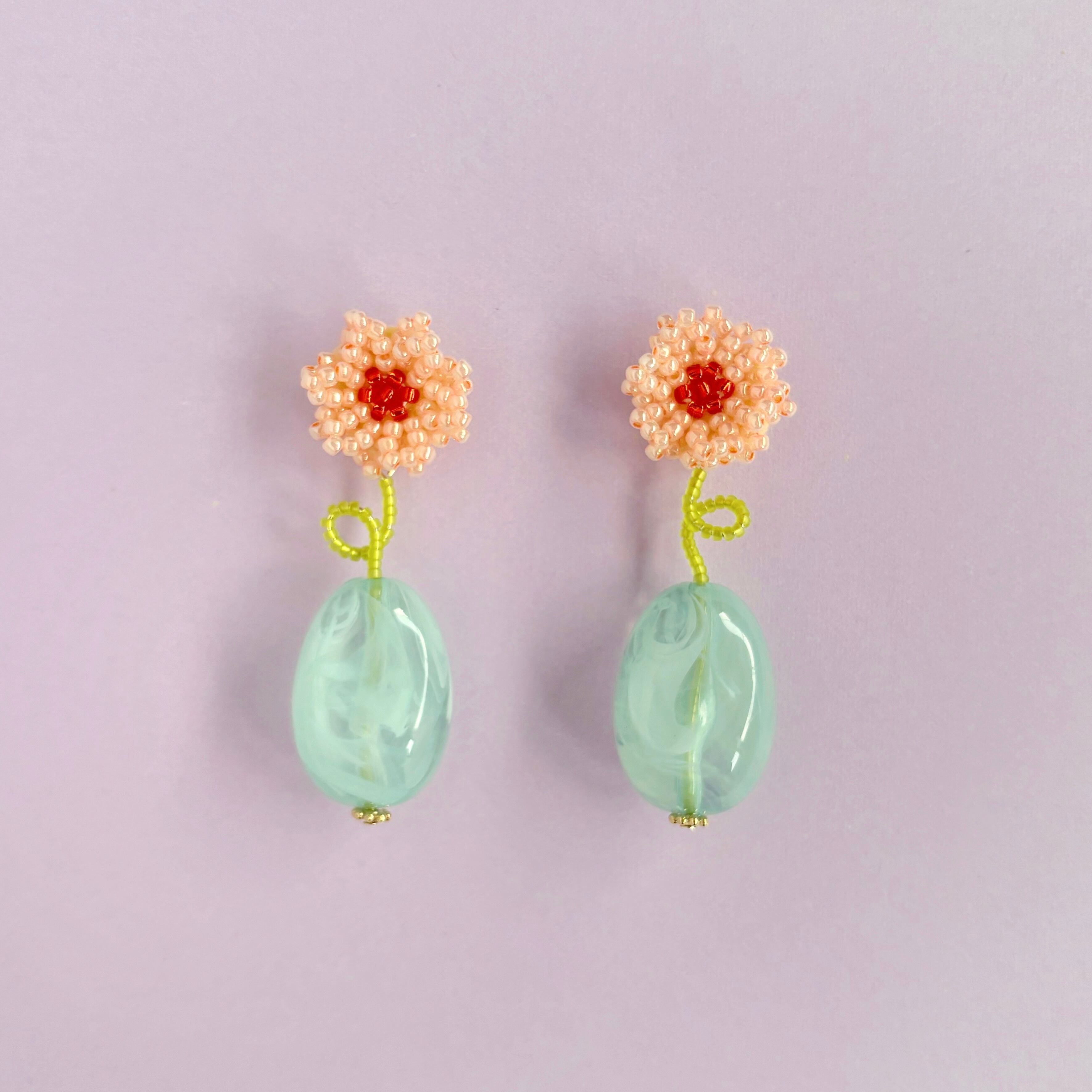 ビーズ刺繍のお花を挿した一輪挿しの耳飾り。